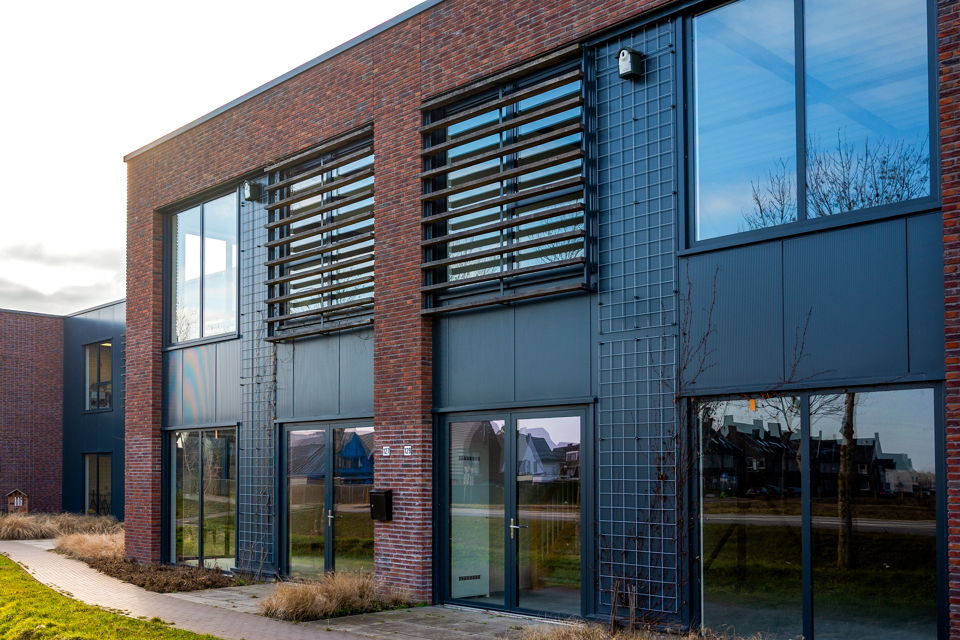 Deze unit (B5) is aan de voorkant van het complex gelegen op een hoek en derhalve goed in het oog springend. De metselwerk gevels dragen bij aan een bijzondere uitstraling.