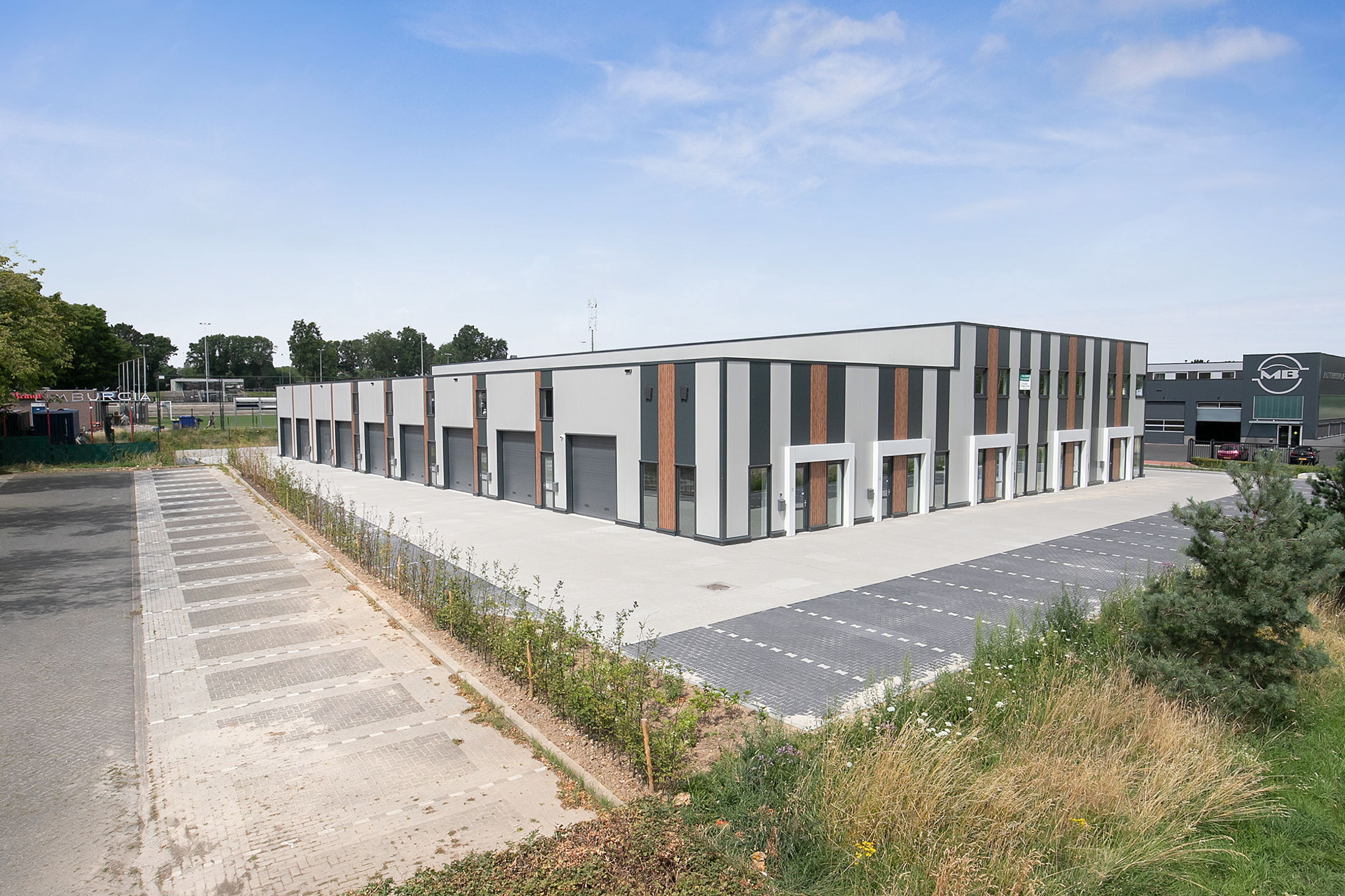 Het gebouw heeft een alzijdig ontwerp met karakteristieke verticale lijnen van antracietgrijze, lichtgrijze en houtlook panelen. De entrees van verschillende bedrijfsunits zijn gemarkeerd door frisse witte kaders. De units aan de voorzijde hebben een fraai uitzicht over de tegenoverliggende woonwijk Oeloven/Bouwberg, de units aan de achterzijde kijken uit op de sportvelden van BSV Limburgia.