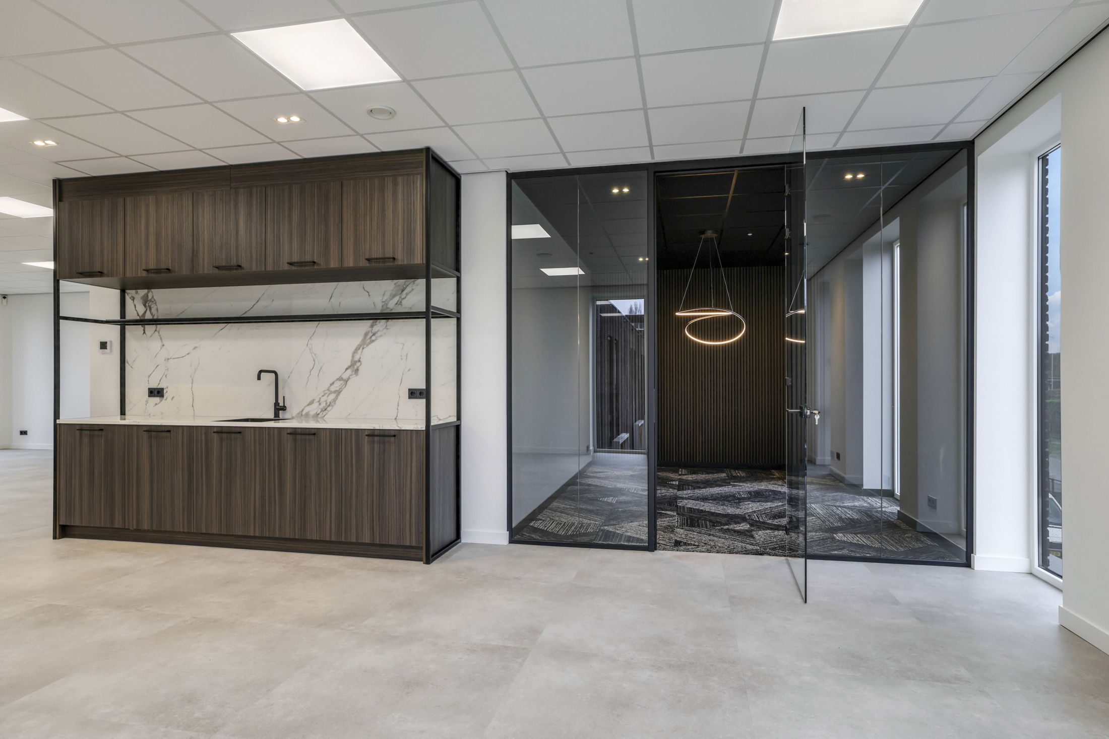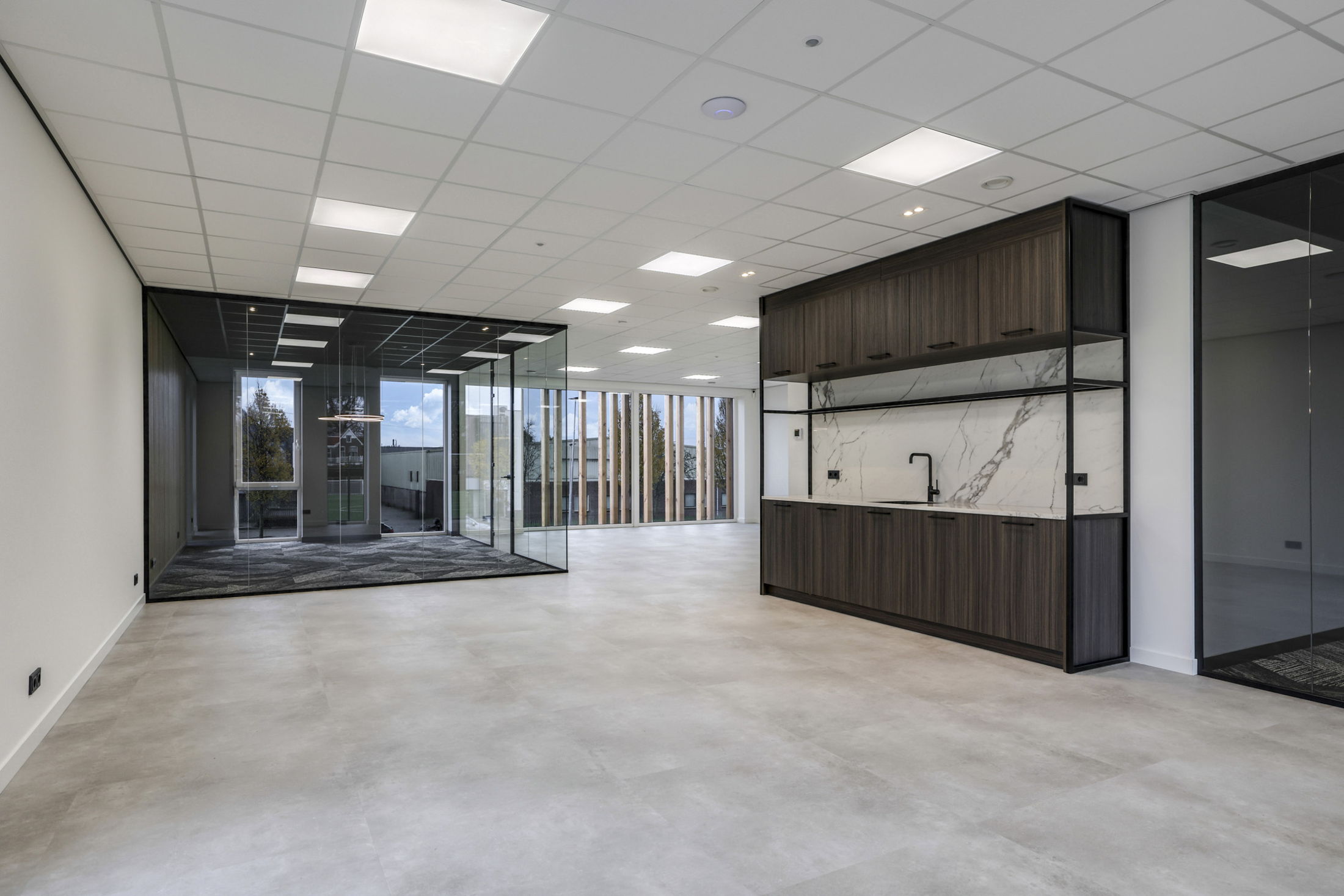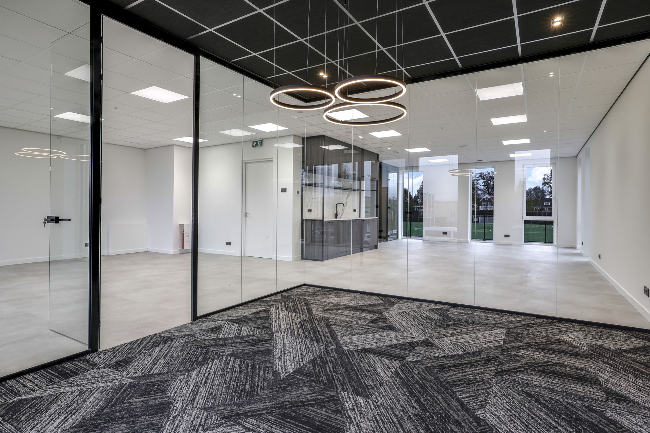 De verschillende kantoren hebben ieder een eigen moderne open keuken met vaatwasser en spreekkamers met sierverlichting.