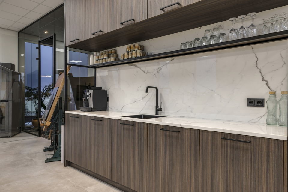 De verschillende kantoren hebben ieder een eigen moderne open keuken met vaatwasser en spreekkamers met sierverlichting.